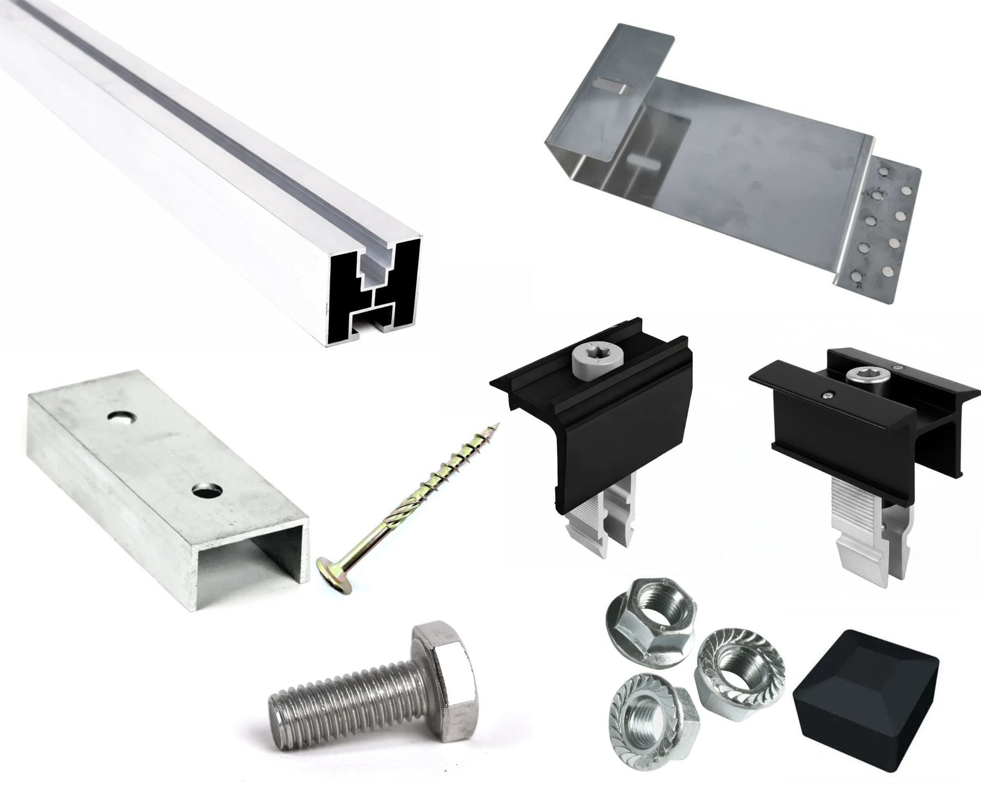 Bei uns erhalten Sie hochwertige PV- und Solarmontagesysteme, wie dieses Montageset für Ziegeldächer mit Biberschwanz Doppeldeckung zur Befestigung Ihrer PV-Module. Der Bausatz ist für die meisten Module mit einer Leistung von 300 bis 500 Watt geeignet und überzeugt durch seine leichte, robuste Bauweise sowie eine einfache Montage.